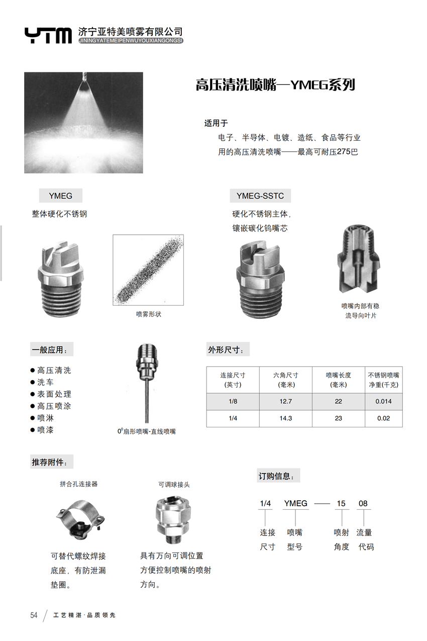 国内专业化生产和销售喷嘴,喷枪和喷雾系统的技术企业高压清洗喷嘴-YMEG系列