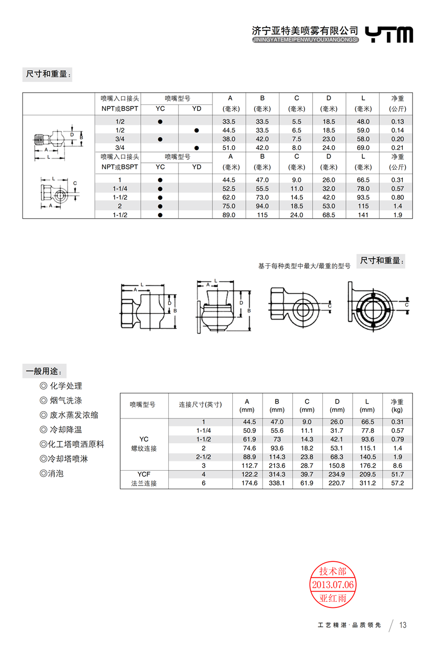 一般用途:加湿作业、化学反应处理、洗涤气体和空气以除去飞尘和其他燃烧产物、气体冷却、水冷却、金属处理、除去产品上的油渍。