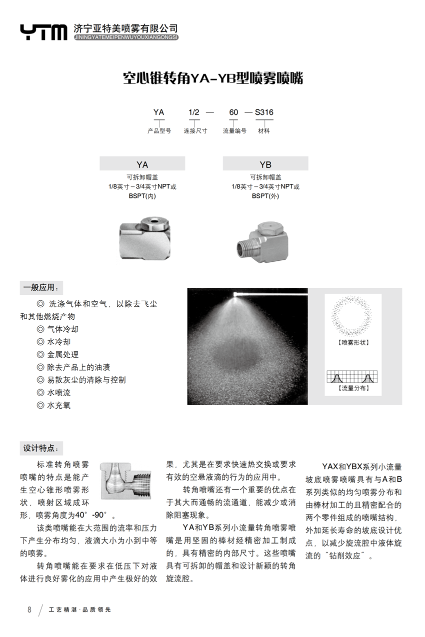 国内专业化生产和销售喷嘴,喷枪和喷雾系统的技术企业空心锥转角YA-YB型喷雾喷嘴
