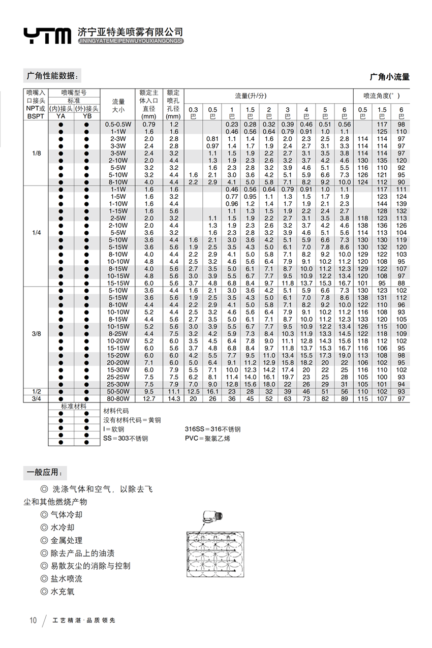 一般应用:洗涤气体和空气以除去飞尘和其他燃烧产物、气体冷却、水冷却、金属处理、除去产品上的油渍、易散灰尘的清除与控制、水喷流、水充氧