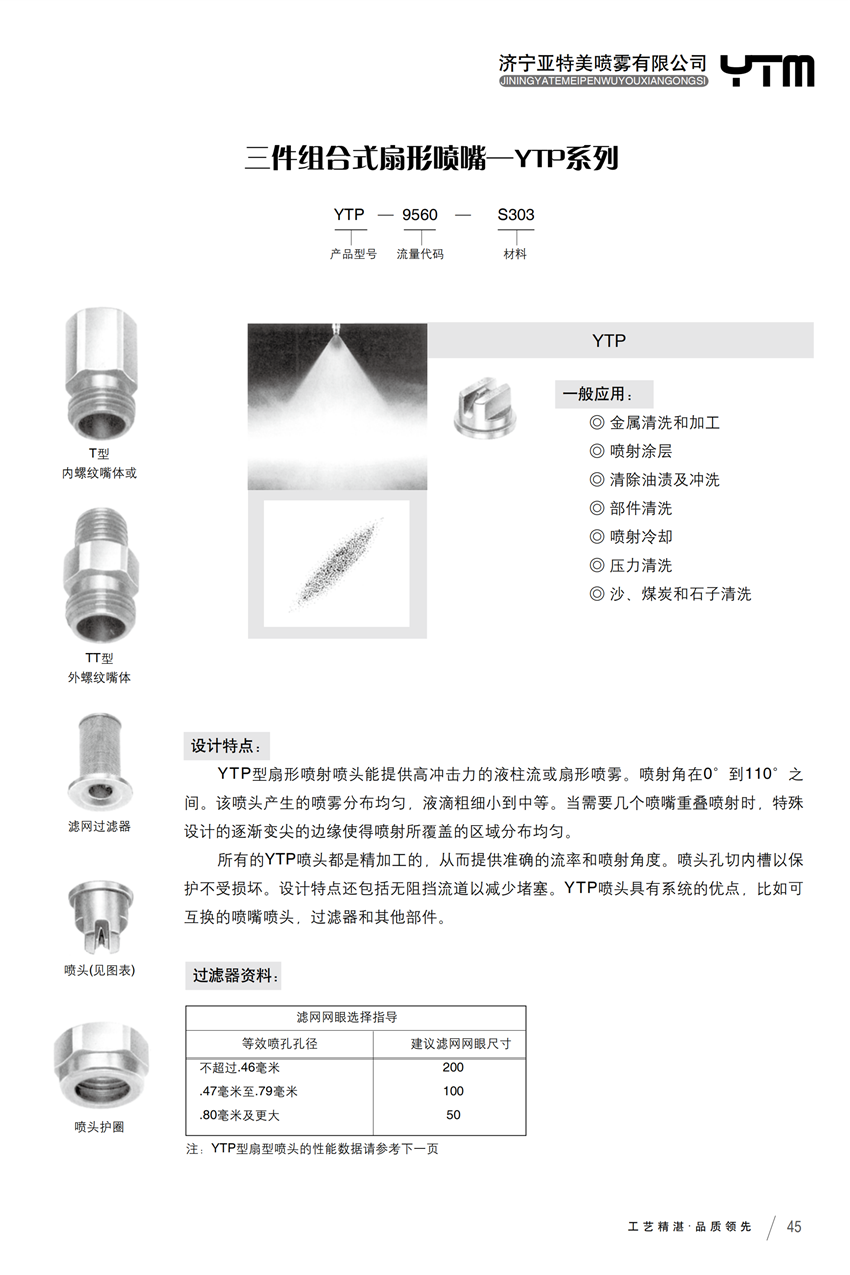 国内专业化生产和销售喷嘴,喷枪和喷雾系统的技术企业三件组合式扇形喷嘴-YTSP系列