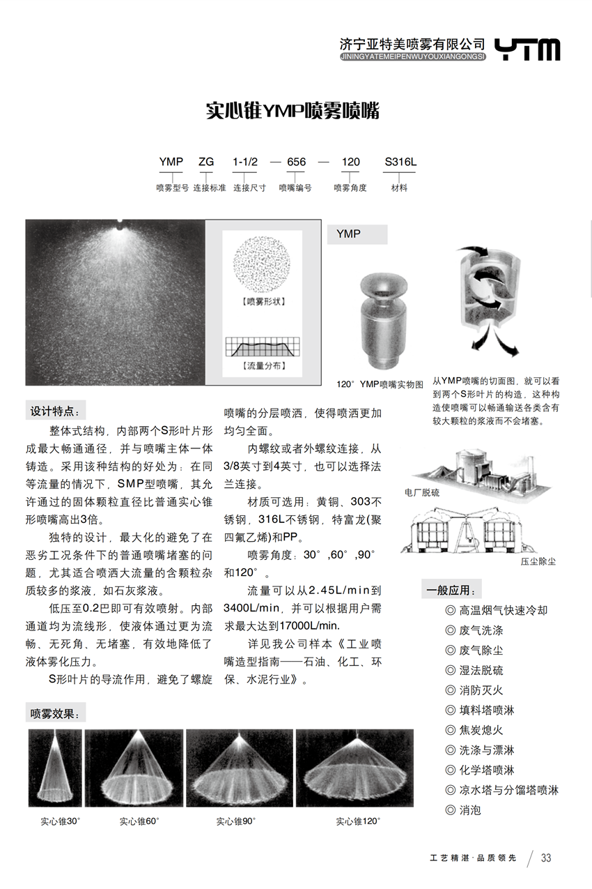 产品型号YMP 编号 656 连接标准ZG 喷雾角度120 材料S316L